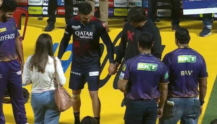 आयपीएलच्या 9व्या सामन्यात केकेआरने आरसीबीचा 81 धावांनी पराभव केला. केकेआरचा चालू मोसमातील दोन सामन्यांतील हा पहिला विजय आहे तर आरसीबीचा दोन सामन्यांमधील हा पहिलाच पराभव आहे. या सामन्यात शाहरुख खान संघाला प्रोत्साहन देण्यासाठी ईडन गार्डन्स स्टेडियमवर पोहोचला होता. सामना संपल्यानंतर शाहरुख खानने विराट कोहलीची मैदानावर जोरदार भेट घेतली. दोन्ही राजांनी एकमेकांना मिठी मारली. यानंतर शाहरुखच्या विनंतीवरून विराट कोहलीने किंग खानच्या पठाण चित्रपटातील झूम जो पठाण या गाण्यावर डान्स मूव्ह दाखवला. यादरम्यान विराटच्या उजव्या पायाच्या गुडघ्यावर पट्टी बांधण्यात आली होती. विराट आणि शाहरुख खानचा हा व्हिडिओ सोशल मीडियावर व्हायरल झाला आहे.